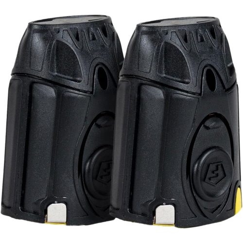 Taser Bolt, Pulse, and C2 Replacement Cartridges-Live 2 Pack. The replacement cartridges have a 15 foot range. They are black cartridges that contain a primer, gas capsule, probes, serialized tags and conductive wires.